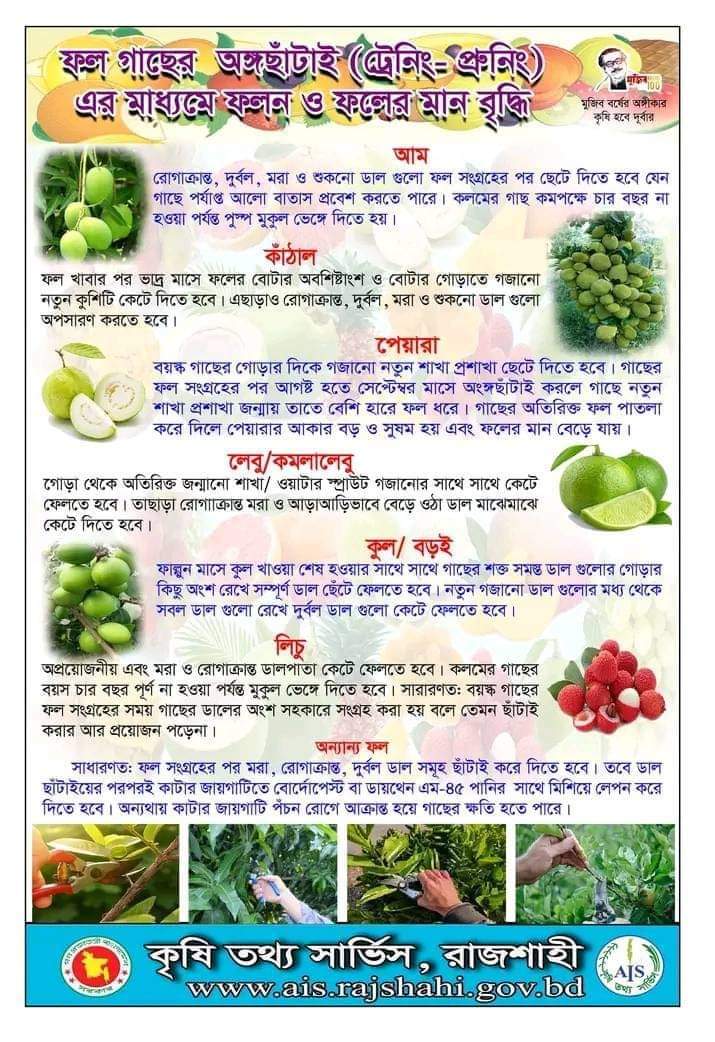 ফল গাছের অংগ ছঁাটাই( ট্রেনিং- প্রুনিং) এর মাধ্যমে ফলের গুনগত মান বৃদ্ধি।